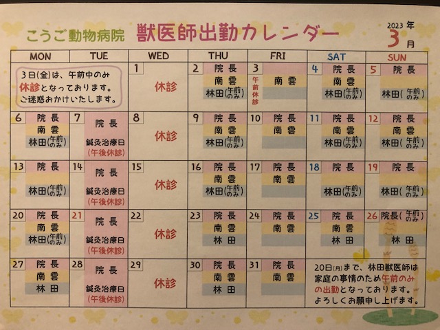 3月3日(金)の午前中はスタッフ研修のため休診となります。