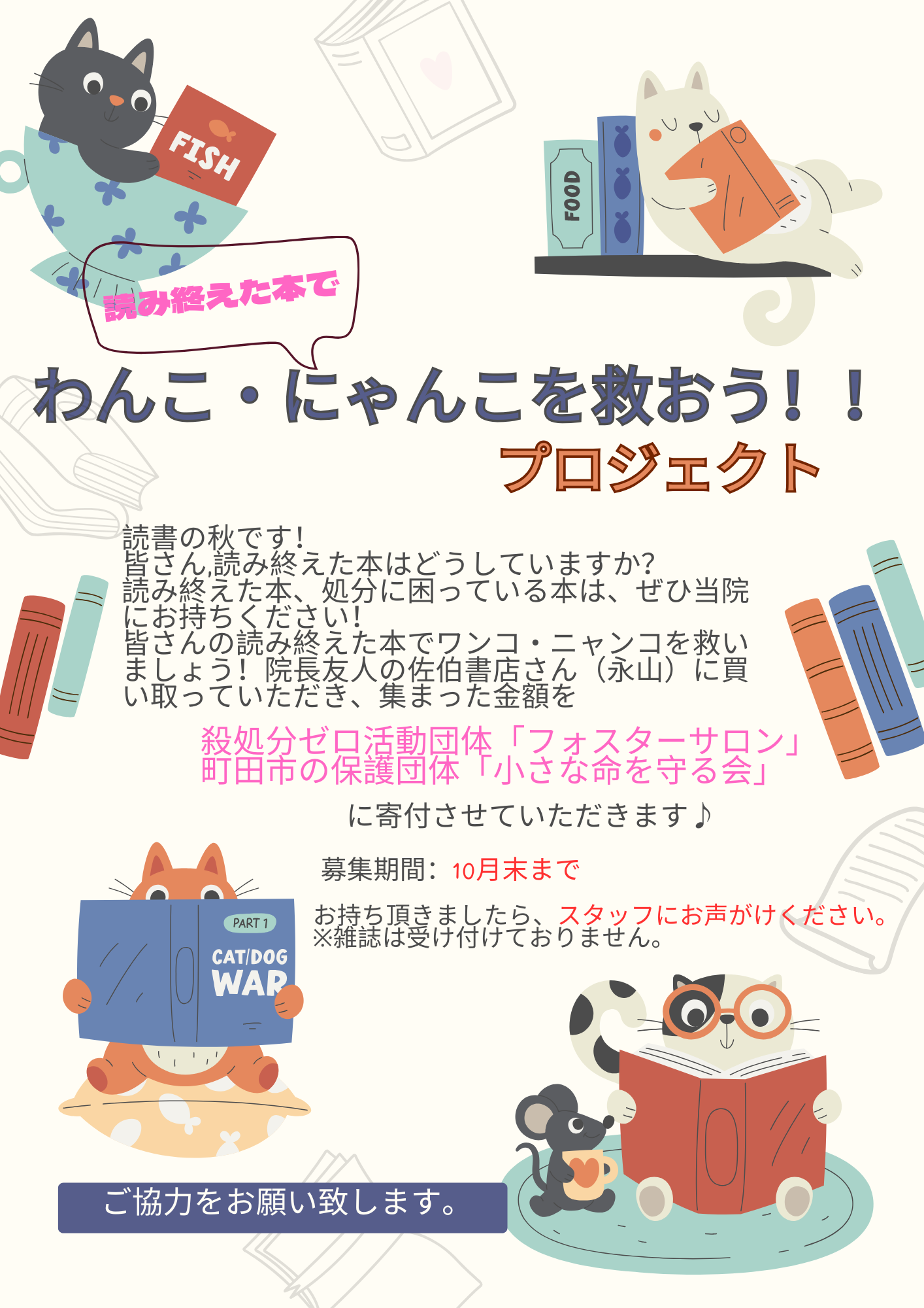 毎年恒例の古本でワンコ、にゃんこを救おうプロジェクトを開催いたいます。