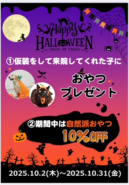 ハッピーハロウィン!!ということで10月末まで自然派おやつが10%OFFとなります。