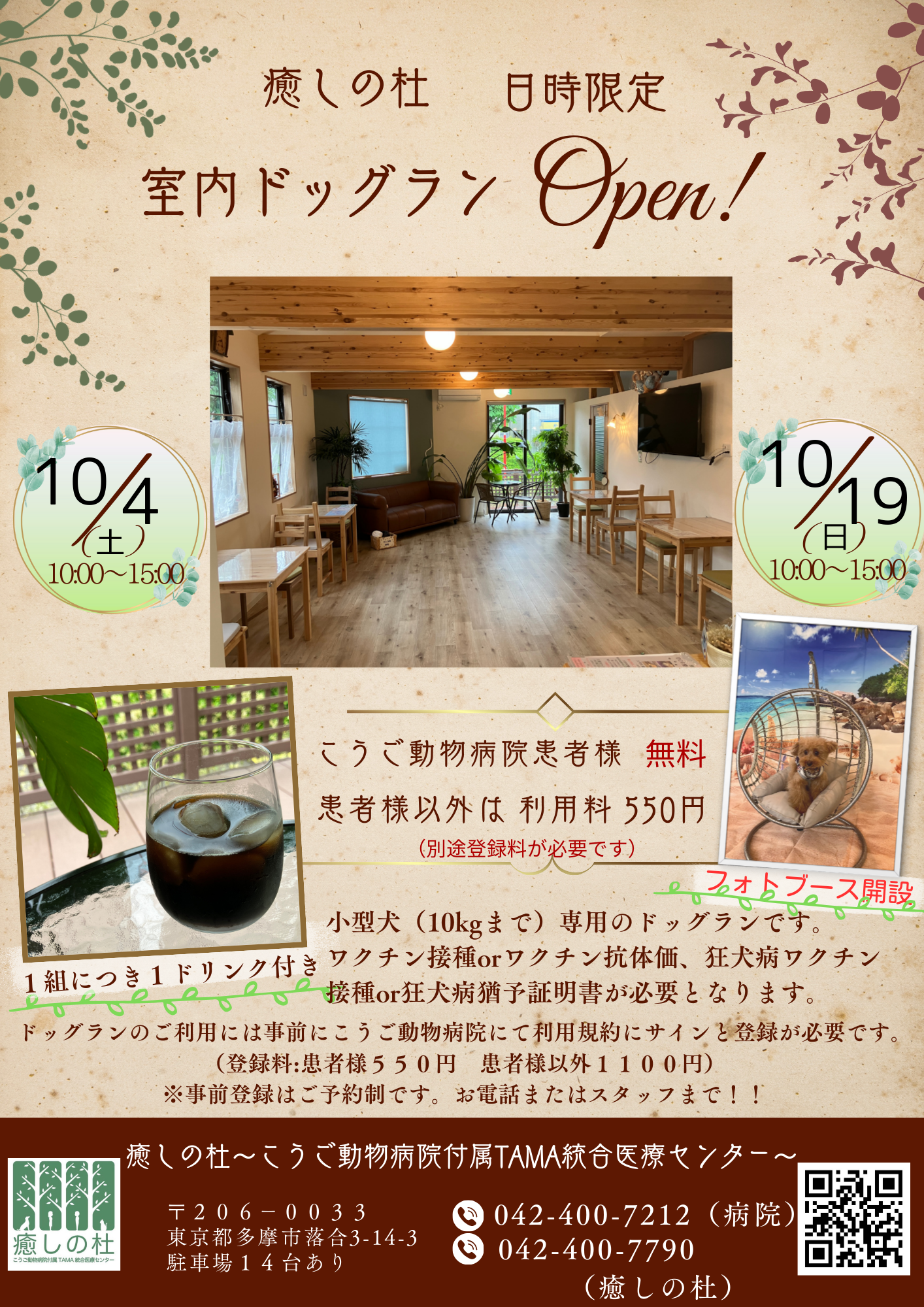 10月4日(土)と10月19日(日)は癒しの杜で室内ドッグランが開催されます。